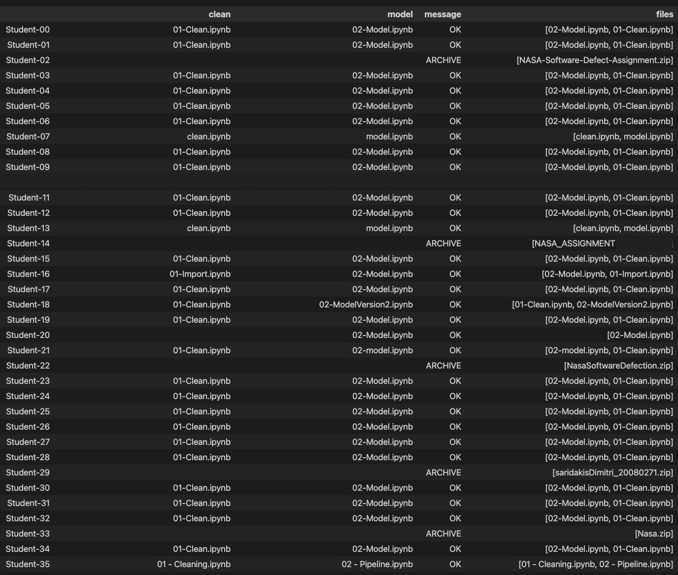 In last year's Data Mining 2 class I asked students to submit two files as part of a particular assignment. The files were to be named 01-Clean.ipynb and 02-Model.ipynb.