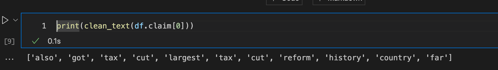 Next we create a column in the dataframe to contain the tokens (this takes about 18s)