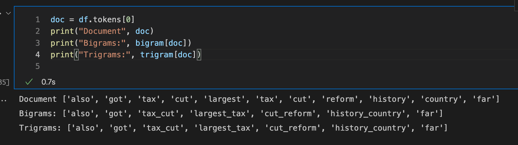 To see the bi/tri-gram for a single document (claim) use (note no trigrams were generated)